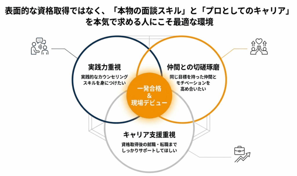 だからこそ、現場で通用する本物のカウンセリングスキルが身体に染み込んでいきます。