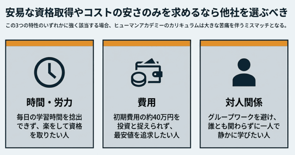 | ヒューマンアカデミーがおすすめな人 | ヒューマンアカデミーをおすすめしない人 |
