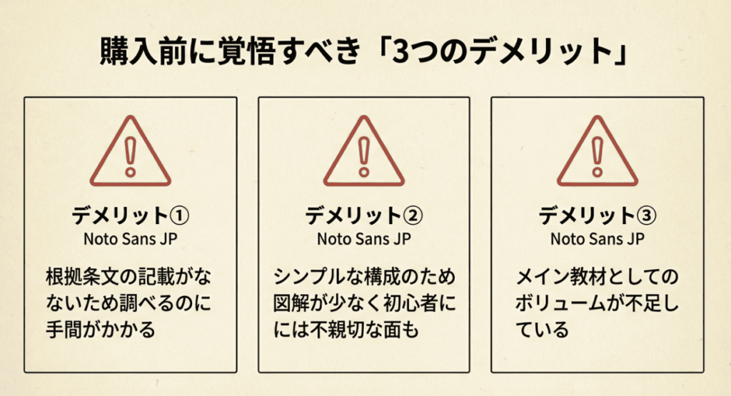 - 内容の評判は不親切?「根拠条文の深掘り」ができない