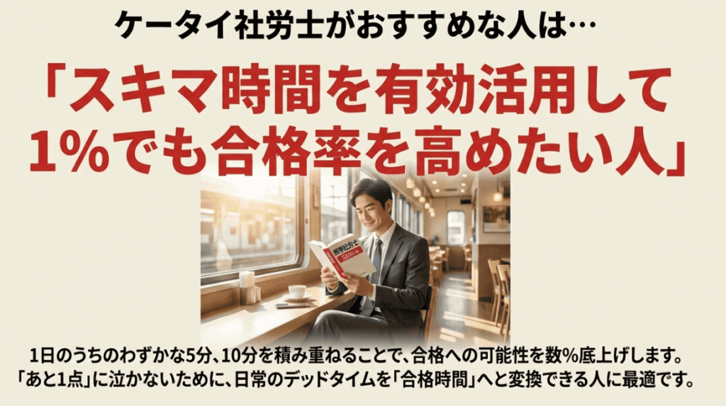 これを読めば、あなたが『ケータイ社労士』を手に取るべきかどうかが分かり、2026年度の本試験で「あと1点」をもぎ取るための明確な戦略が手に入ります。
