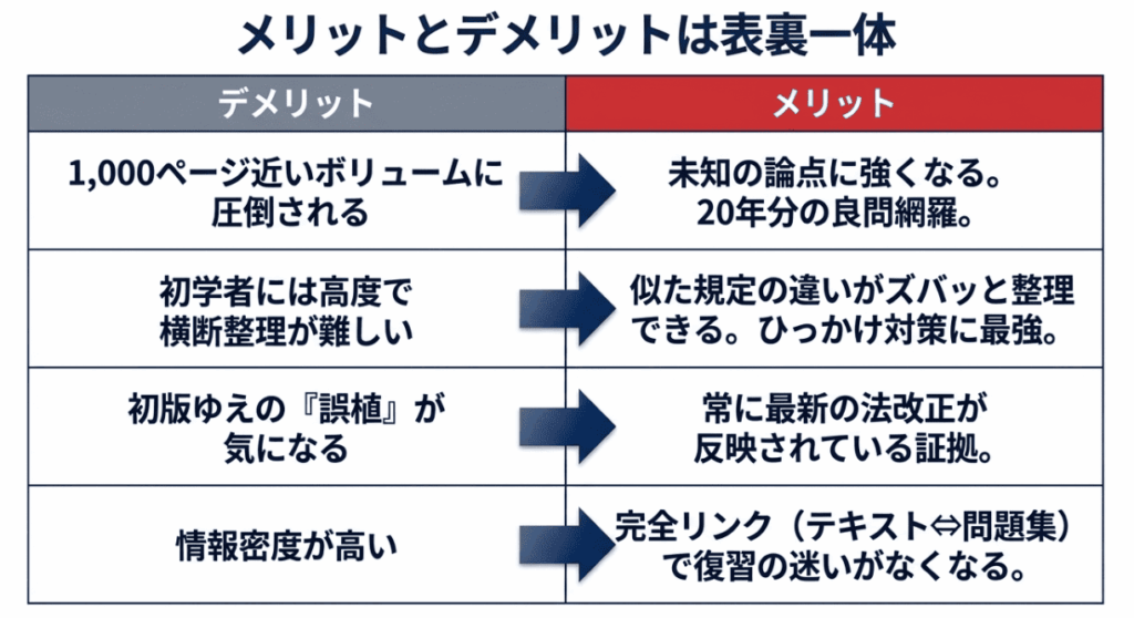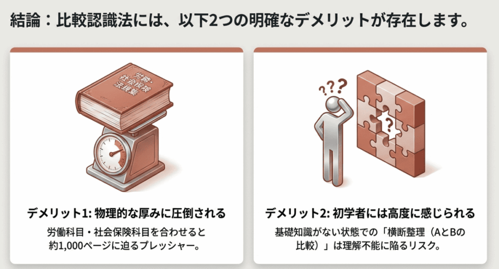 社労士試験の攻略において、比較認識法(岡武史講師シリーズ)は非常に強力な武器になりますが、すべての人にとって完璧な教材というわけではありません。