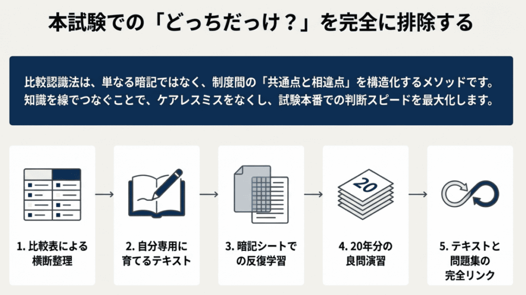 基礎の土台さえあれば、比較認識法が知識の混同を防ぐ強力な武器となり、合格を後押ししてくれます。